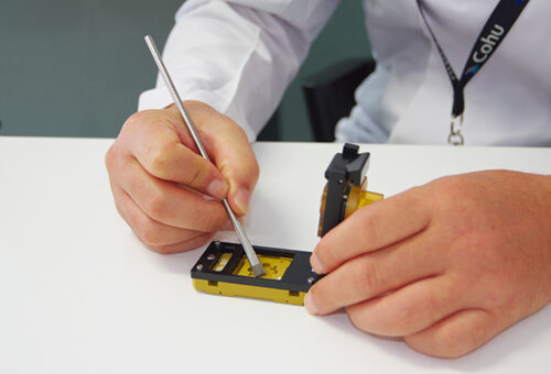 Nanotek Brush is fine stainless wire brush for removing solders or dirt stuck on the tip of spring probe. It has its range of wire diameter from 30µ to 50µ and its fine wire is effective for removing solder or dirt on complicated tip type. We also have Nanotek vacuum, which is nanotech brush combined with vacuum cleaner powered by your compressor or vacuum pump.